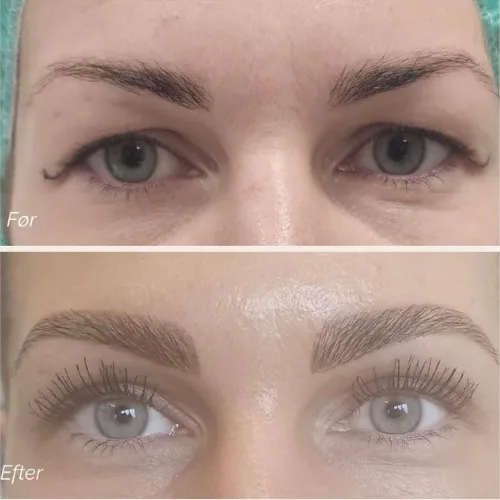 Øvre og nedre øjenlågsoperation. 40 årige kvinde. Før og efter 3 måneder.