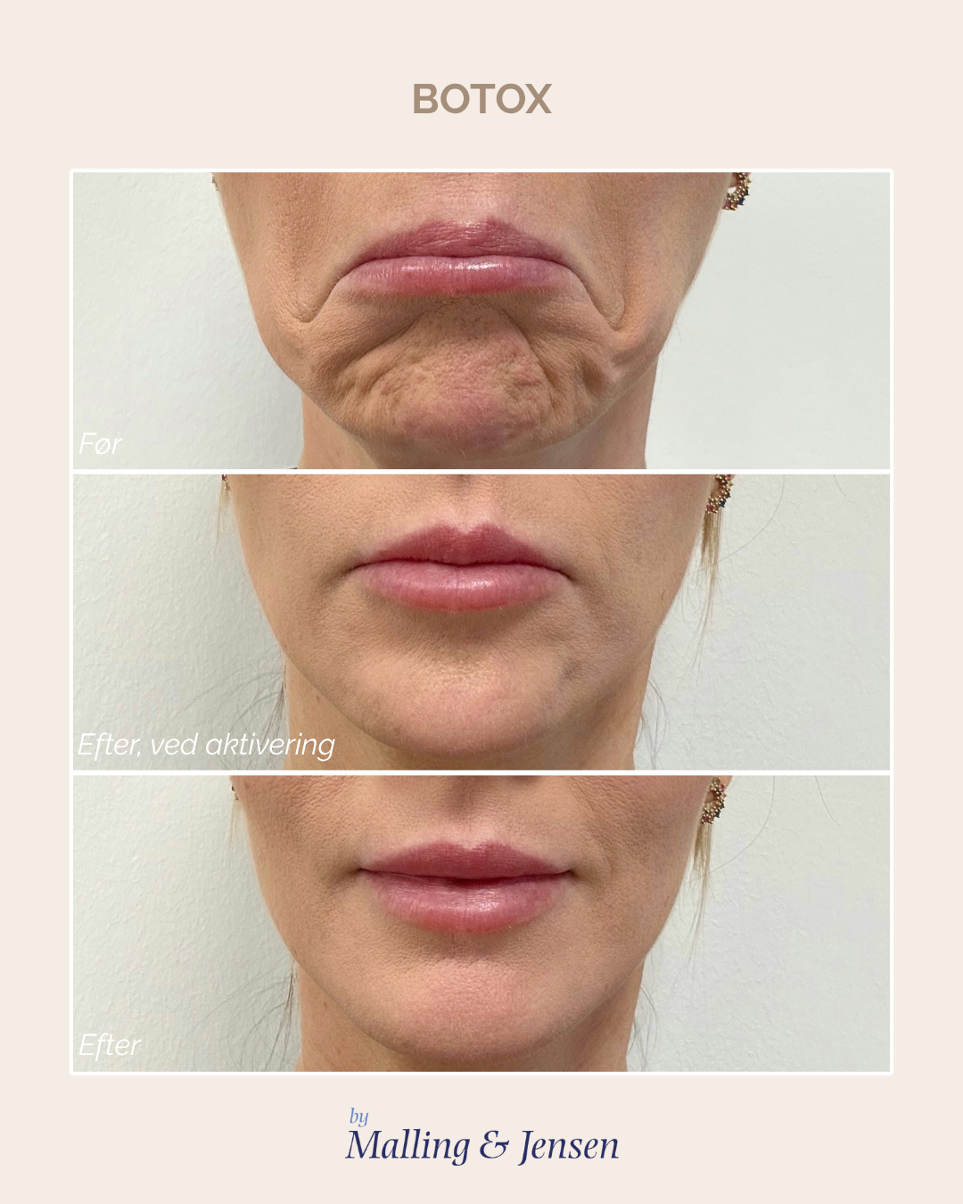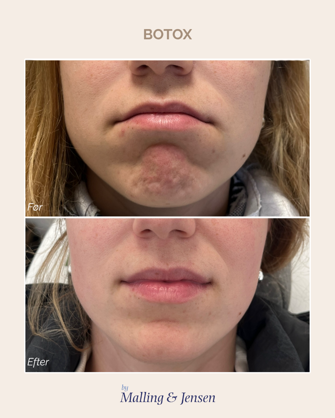 Hage behandlet med 1 ml filler, for at udligne hagekløft.
